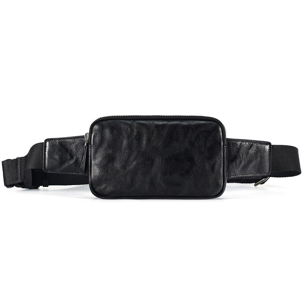 Polyvalence et élégance avec le sac banane noir léger en cuir pour homme